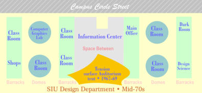 In the late 1960s, students designed a Frei Otto-style tension tent structure to replace the auditorium in